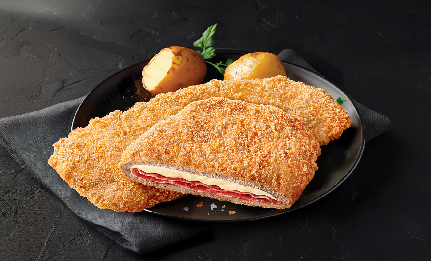 Discover the authentic flavour of our beef cachopo that combines tradition and trend. With marinated beef, filled with cheese and cured ham, and a gluten-free breading, it is ideal for the most demanding consumers. Awarded with SABOR DEL AÑO 2025 awards, it stands out for its superior quality and meticulous production process.